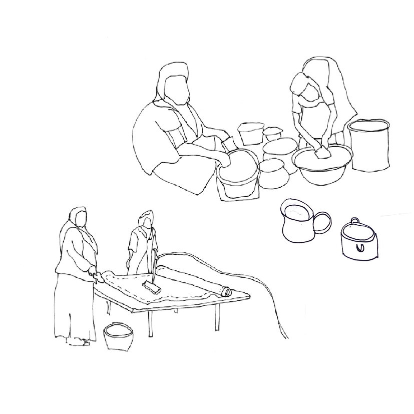 In the past, women would gather to wash pots or clean carpets in the threshold garden spaces. Today, this space is very underused in a collective manner in terms of work. However, the family still make social use of their garden, meeting with neighbours once a week in summer.
