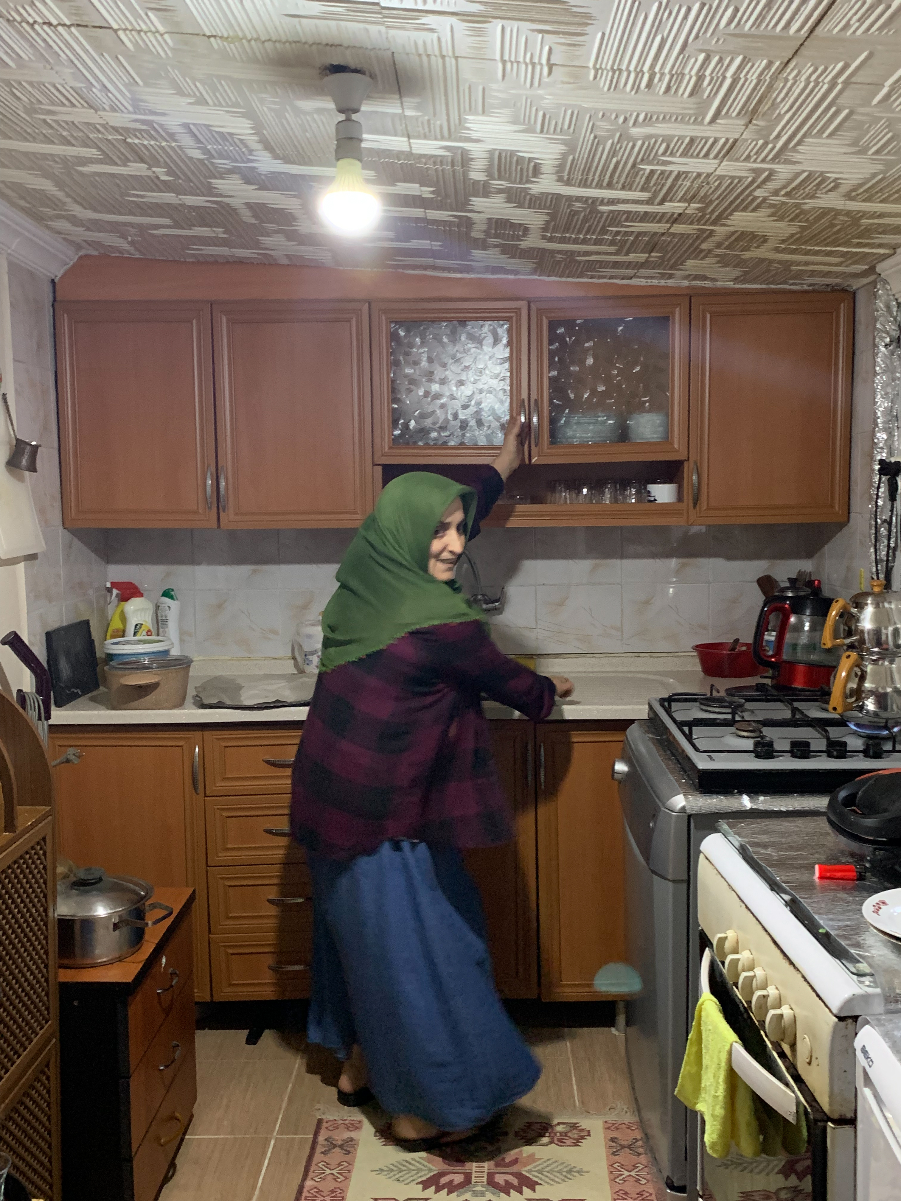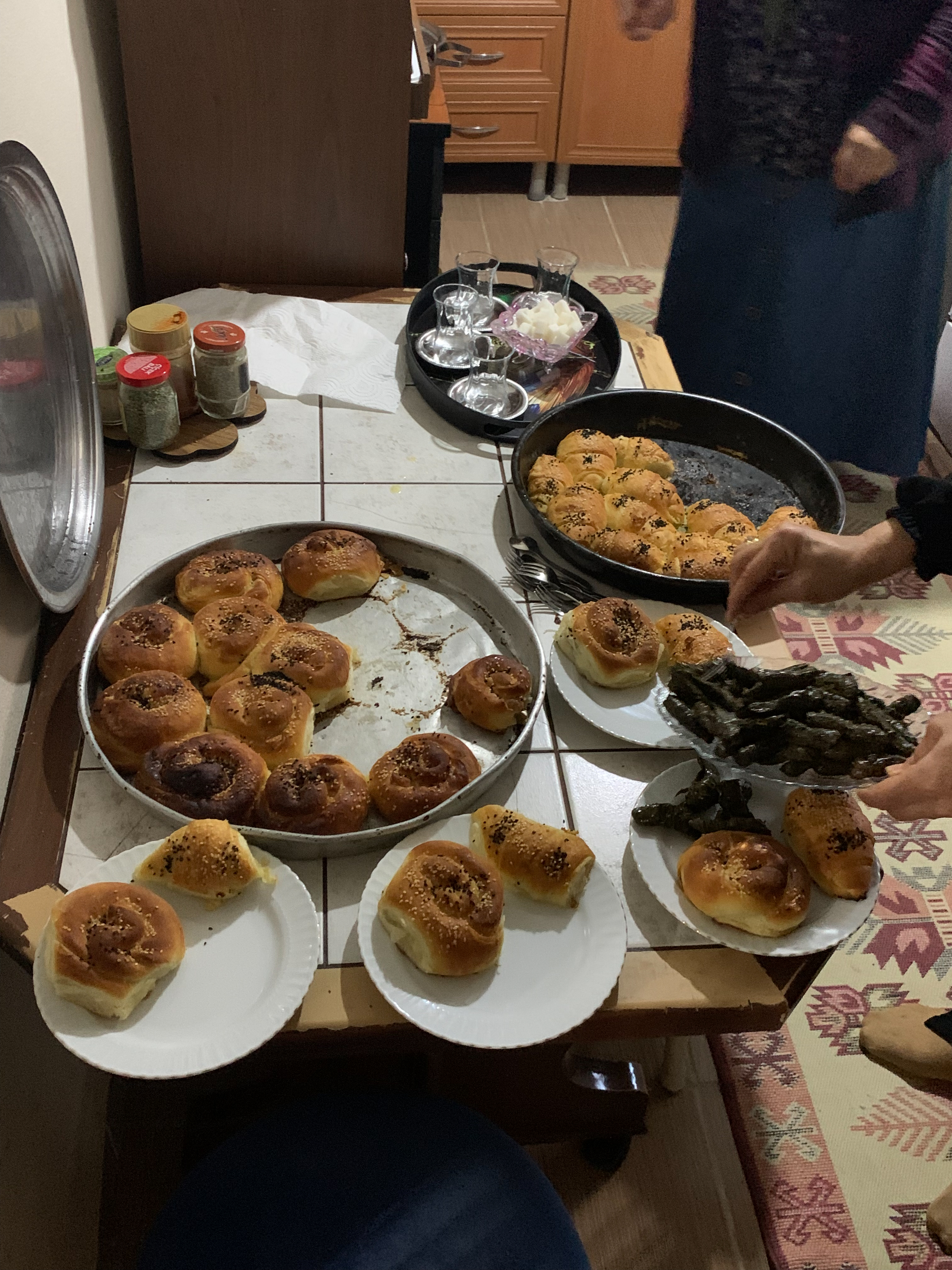 Dinner is often eaten on small trays, or outside due to the lack of space indoors. Foldable tables are stored in the corridor for special occasions e.g. the Altin Gunu.